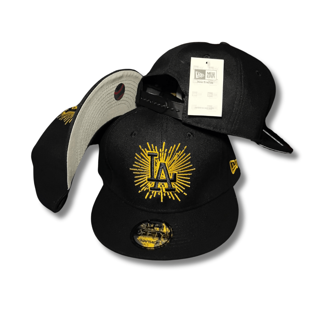 Shine bright with the bold and modern Los Angeles Dodgers Metallic Logo Snapback Hat. Featuring a sleek black crown and brim, this hat showcases a stunning metallic gold embroidered “LA” logo, delivering a standout, eye-catching design. Crafted from premium-quality fabric, it ensures durability for everyday wear, while the adjustable snapback closure offers a personalized and comfortable fit.